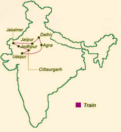 | Delhi | Jaipur | Jaisalmer | Jodhpur | Chittaurgarh | Udaipur | Agra | Delhi Cantt. |